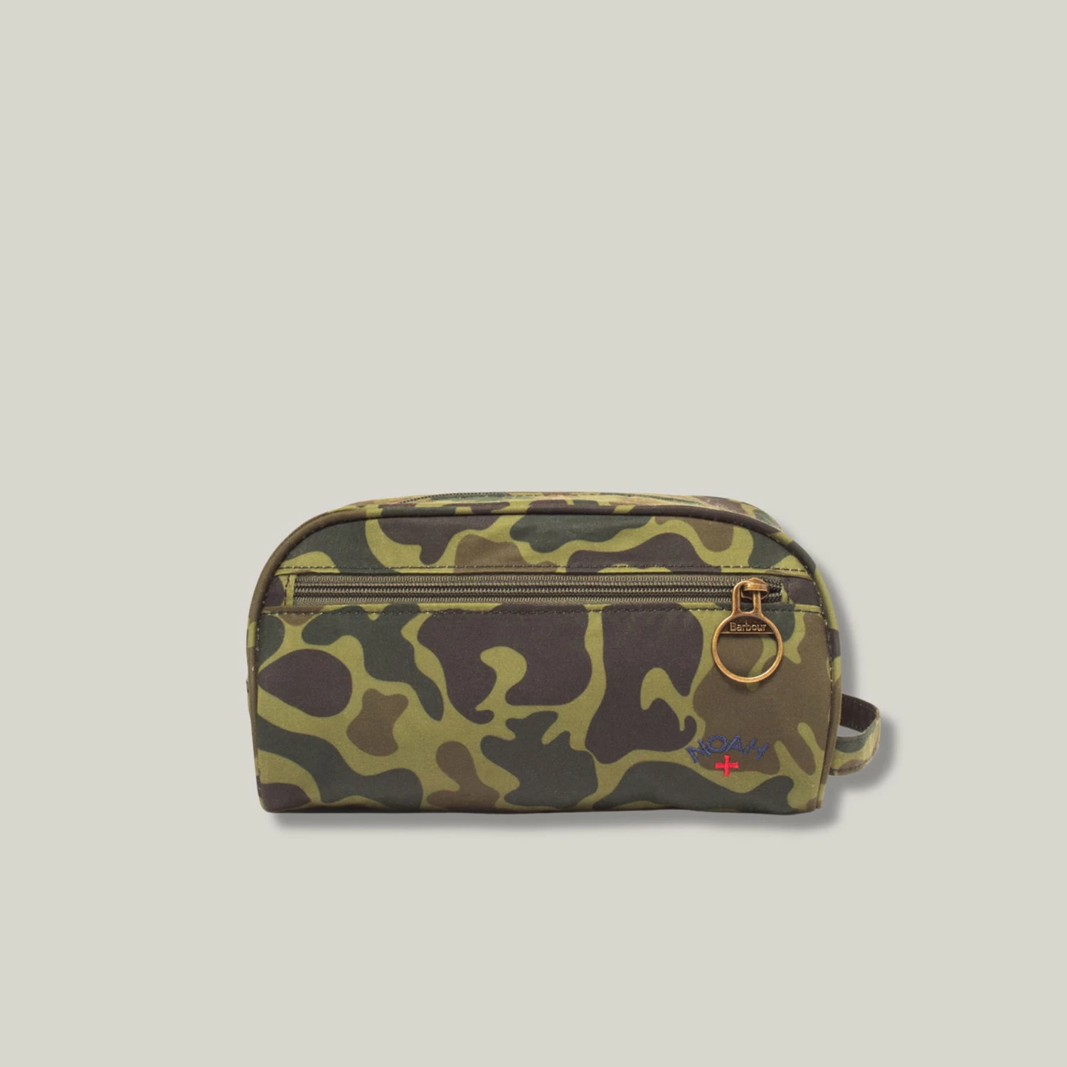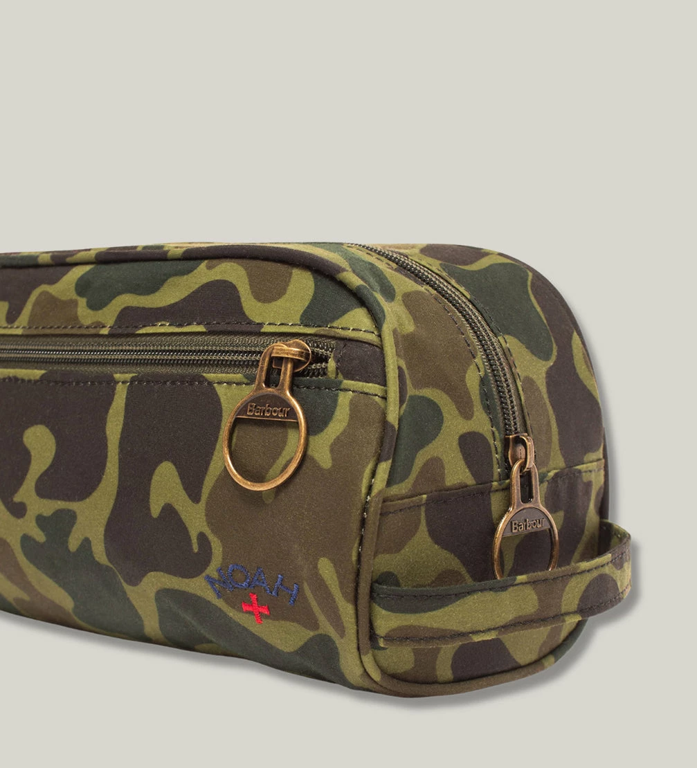 The Barbour x NOAH Washbag offers the perfect on the go addition with an all over camo design. Showcasing a collaborative embroidery to the front, this wash bag features a zip closure and added compartment to the front.