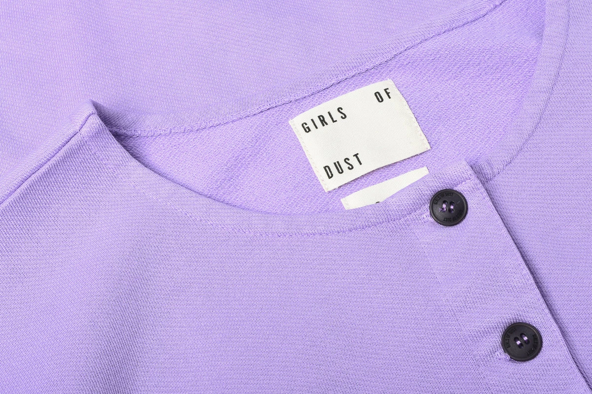 It’s back and this time in luscious lavender. This sweater has the look and feel of one that has been around for years, bringing comfort to all and sundry. The shape is slightly boxy with flat bottom, a wide neck and sportswear cuffs. Corozo buttons also. The organic fleece inside makes you feel like you’re in a fabric softener commercial when you put it on.