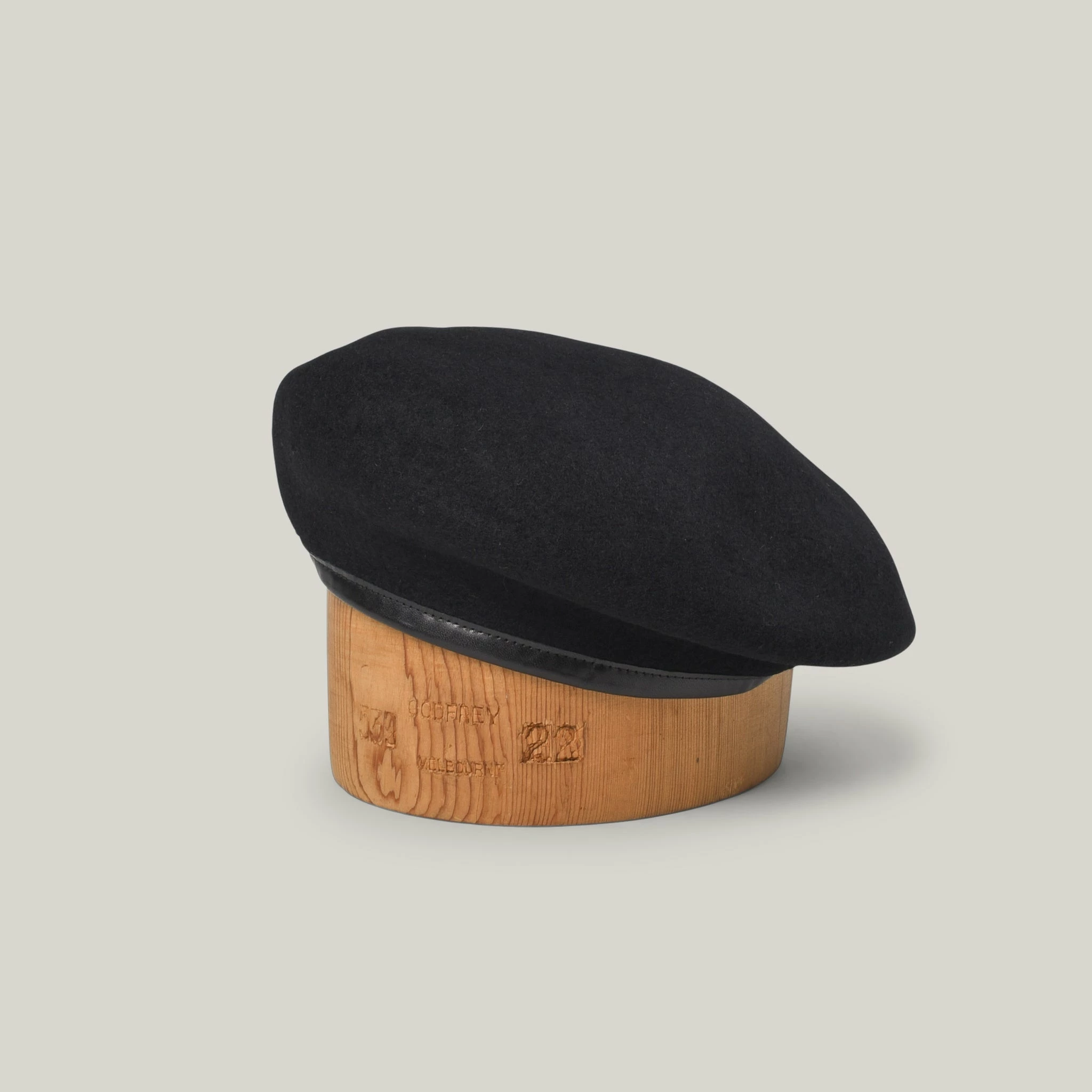 Medium sized beret in the military style with leather trim and drawstring to bring closer to your temples. C’est chic unique.