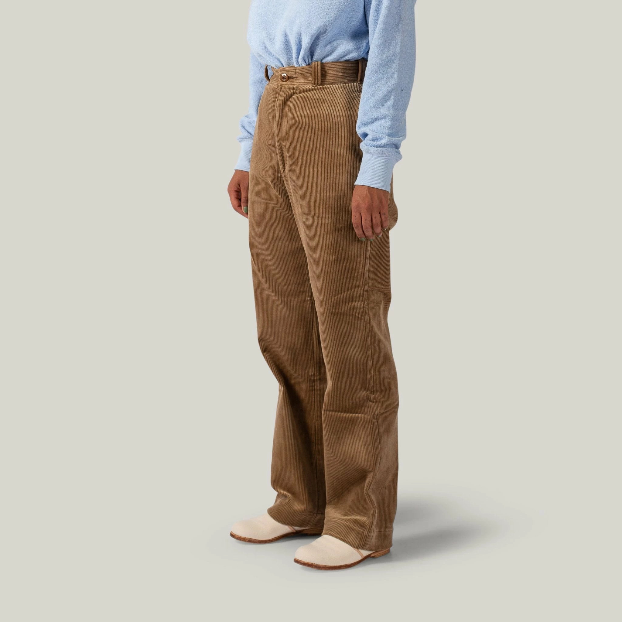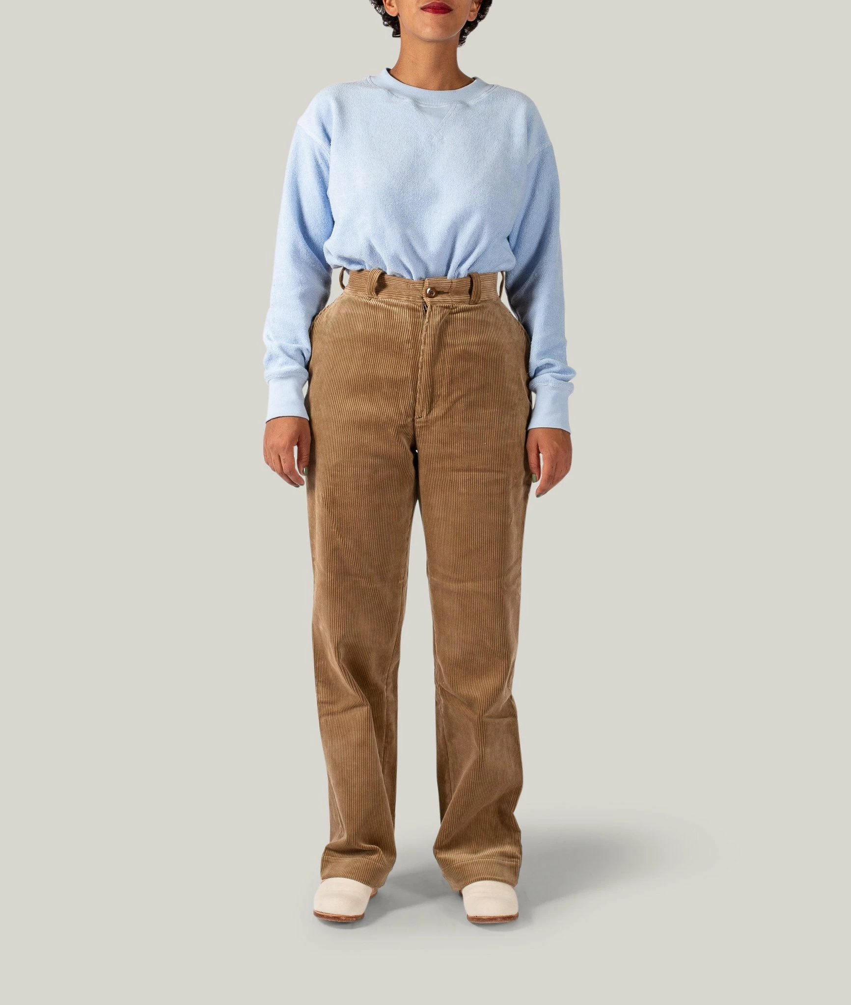The Leno Corduroy trousers are made from a beautiful, soft but thick cotton corduroy. It fits the same as the Leno Chino and Leno Kay, very high and fitted on the waist, with room around the hips, and a long straight leg.