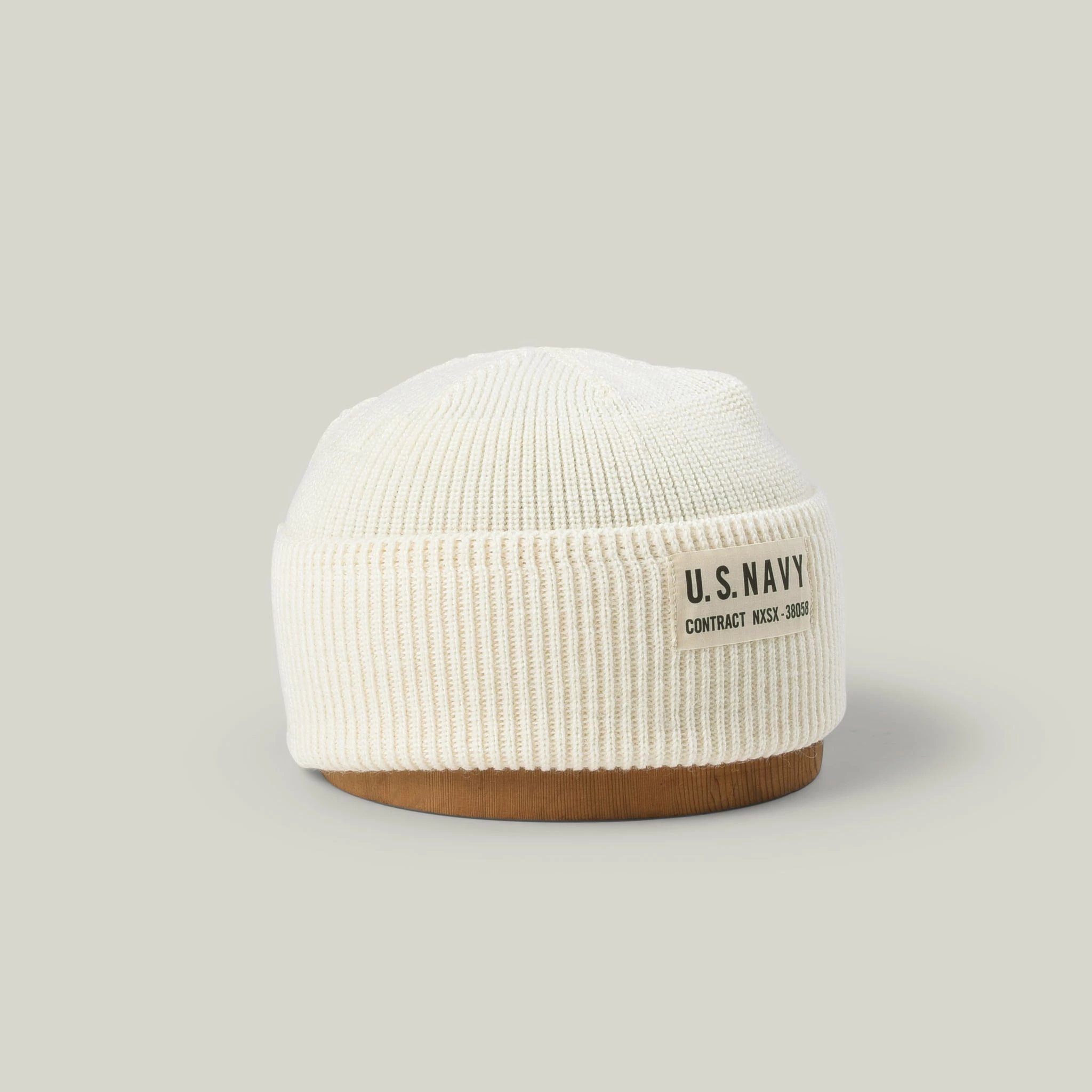Based on the navy watch cap, this time the Papa serves up the milk iteration for all your research missions, making sure you’re clearly seen and clearly warm. Fitted, with a large single roll or thicker double roll.
