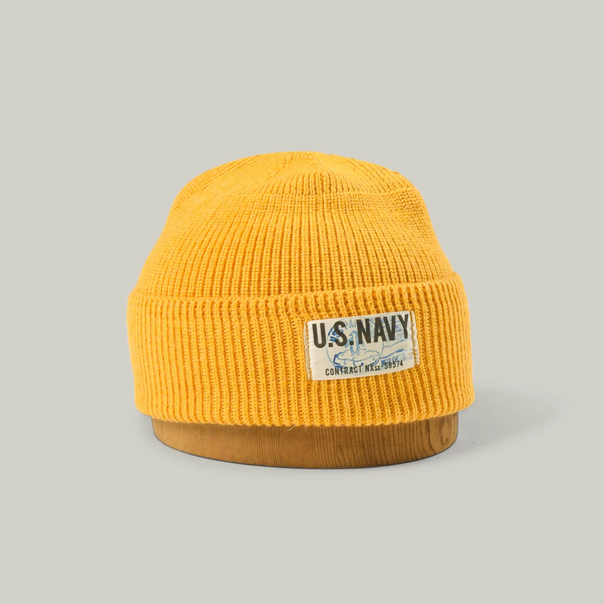 Working with the finest knitwear manufacturer in Japan, the Papa produces this pure wool cap using the original US Navy knit contract batch number NX- sx59574 from May 1944.