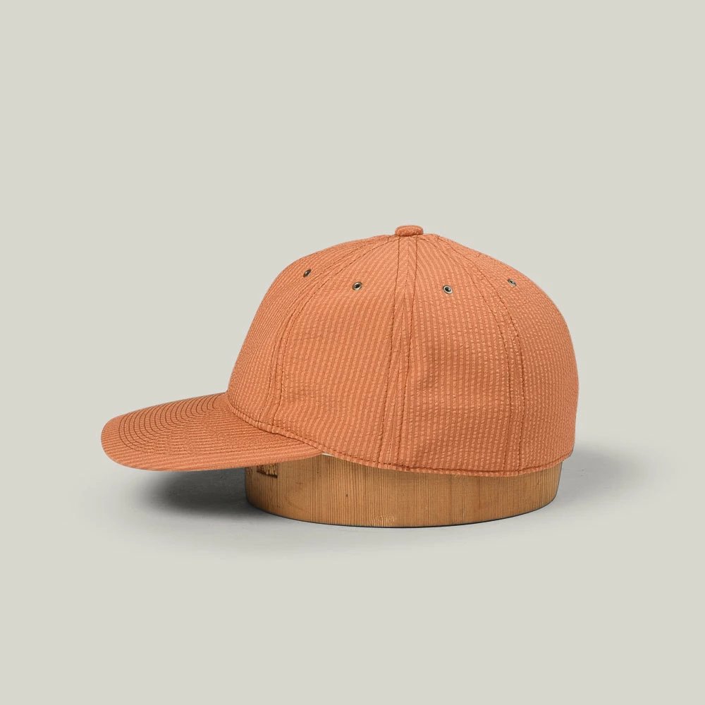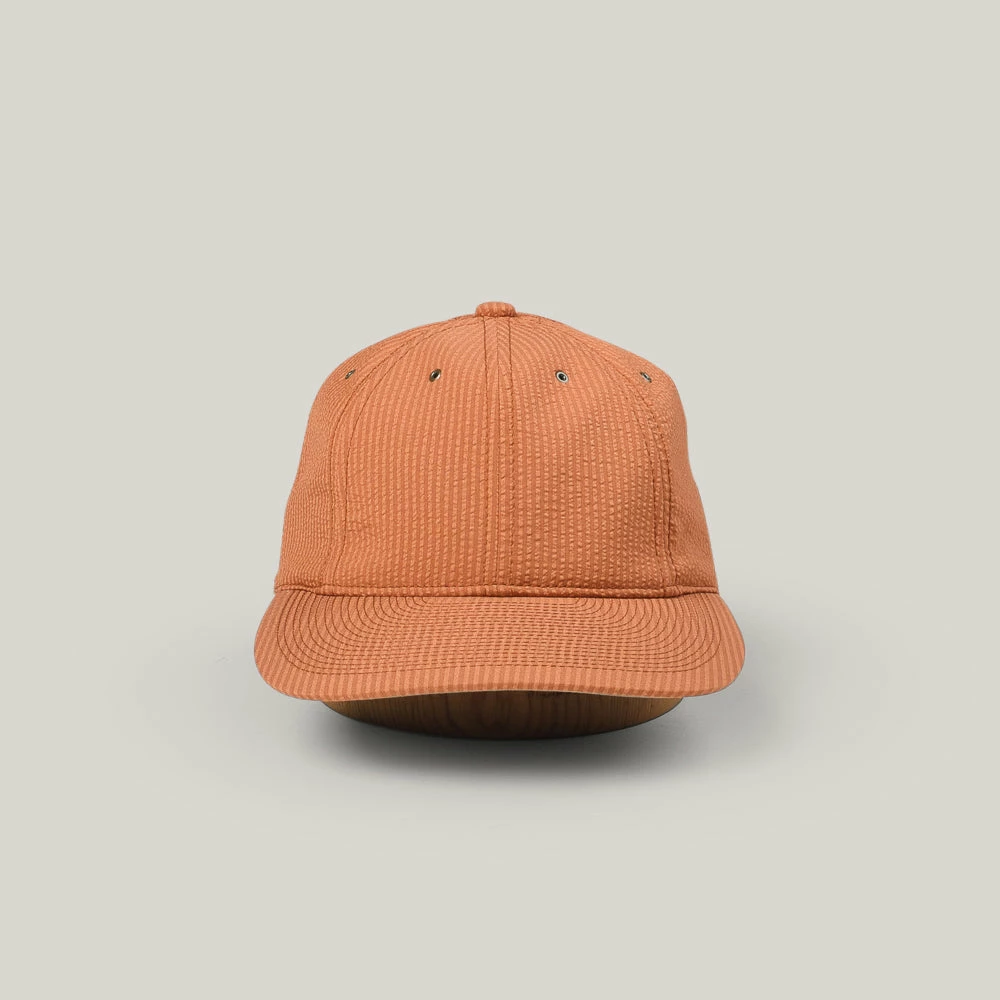 Poten from Japan are constructed in the same factory that produces headgear for Nippon Professional Baseball. The caps are classic modern baseball in shape but seasonally produced in a number of traditional and contemporary fabrics. Construction-wise they have a 19 stitch brim & cowhide sweatband. Each comes with a collectors card as a swing tag. This version is in sweet satsuma seersucker, keeping your lid cool and semi noticeable in crowds.