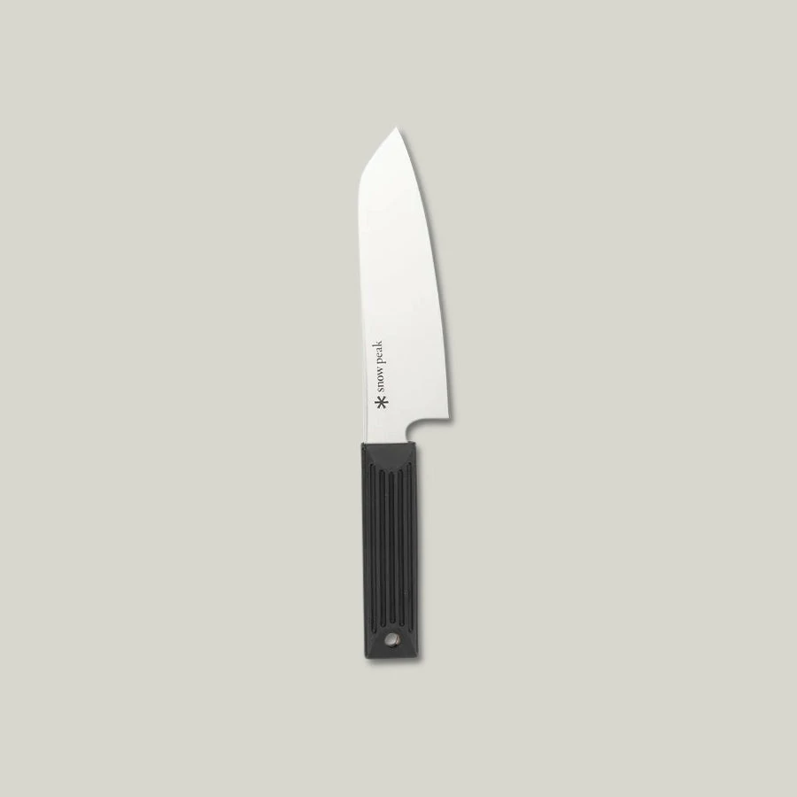 Designed and made in Japan, the Santoku kitchen knife can be used for any food preparation needed, from slicing onions to filleting a fish. Made with a strong, lightweight plastic handle and nylon sheath with straps to attach to yourself or any camp set-up. Blade length 16.5cm, total length 27cm.