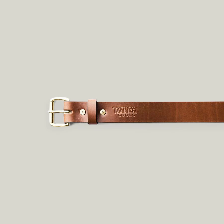 Constructed from 10-11 oz. vegetable-tanned Meridian English Bridle and features a matching leather keeper and metal hardware. The edges are dyed, burnished, and waxed by hand, and each belt is stamped with the signature TG makers mark. Standard belt dimensions: 1.5″ wide