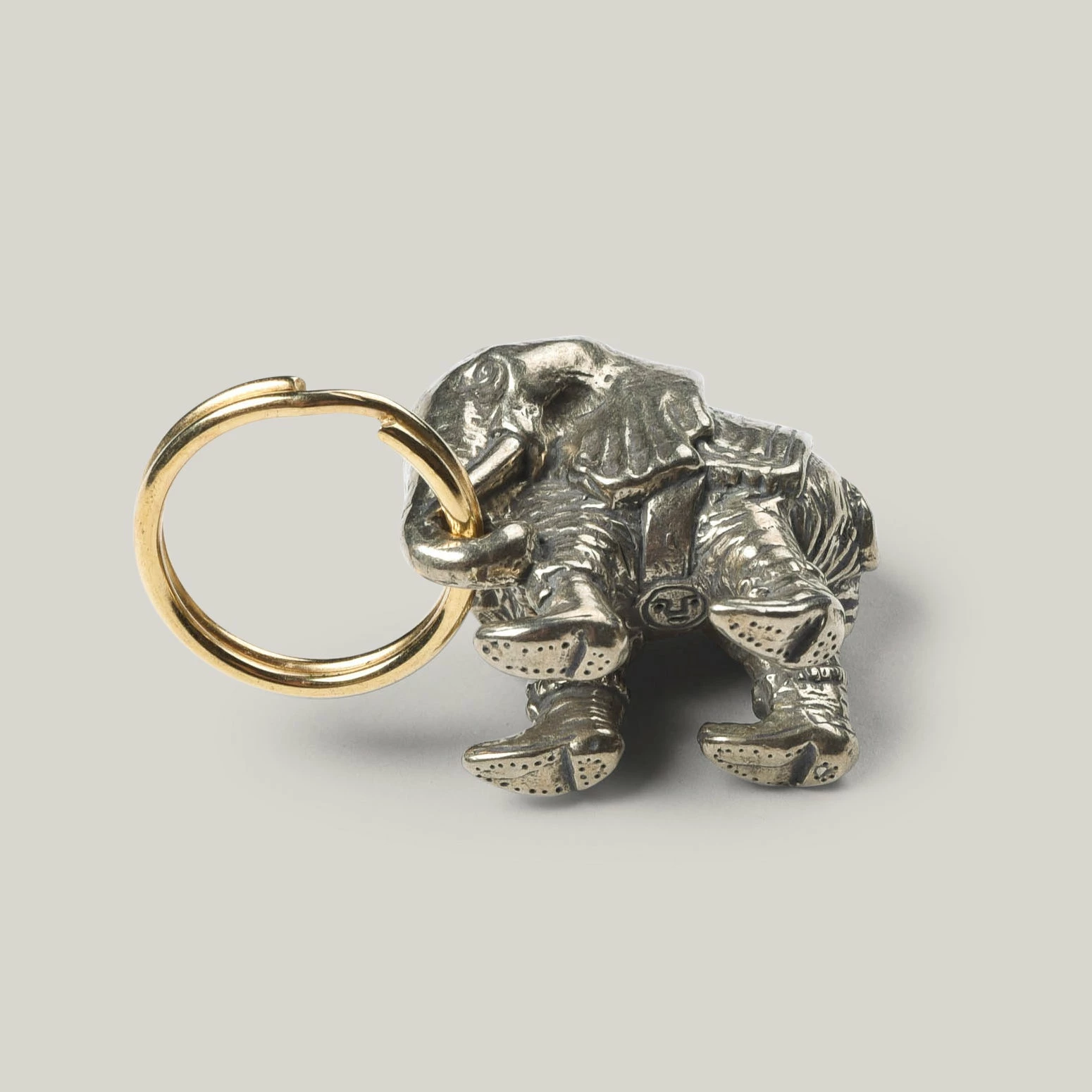 Wonderfully solid addition to William’s pocket hardware collection, Tender’s elephant is lost wax-cast in England from solid white bronze, an amalgam of copper, zinc & tin; and fitted onto a brass-plated steel keyring.