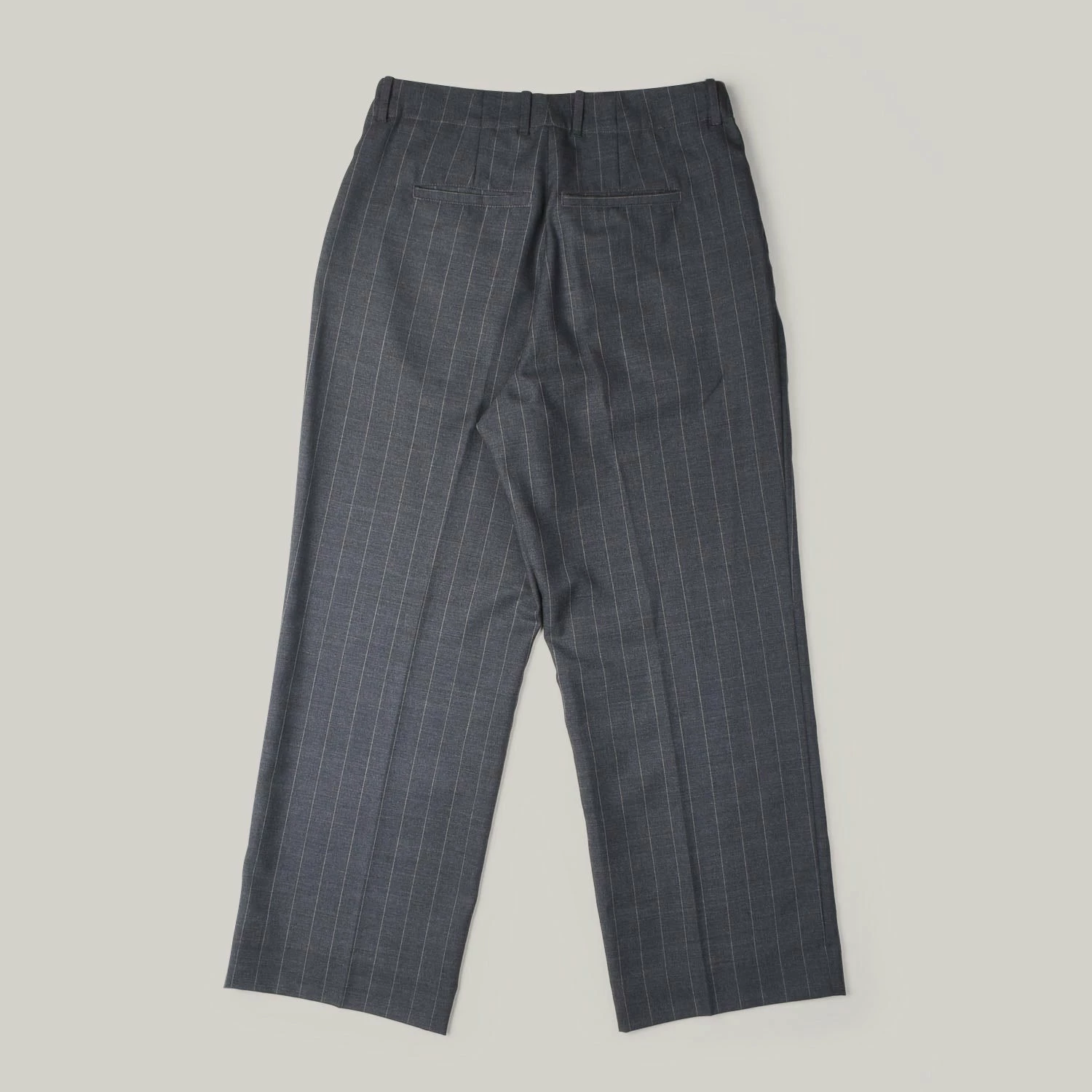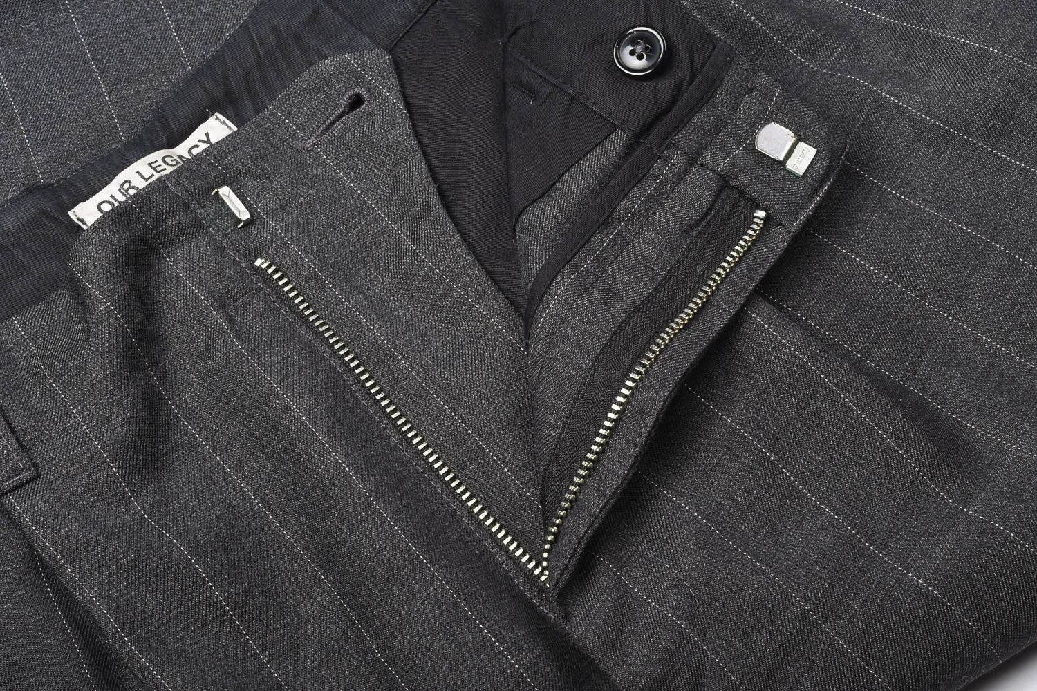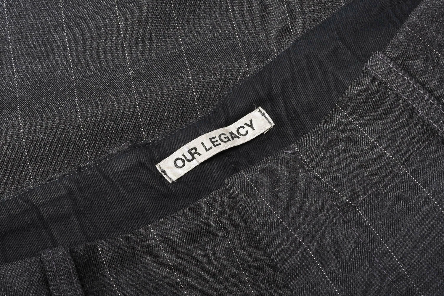 A staple fit from Our Legacy, wide in the leg with small pleats and regular rise, belt loops and zip fly. Made in a woollen mix grey pinstripe fabric, these are easily worn casually or formally as you prefer.