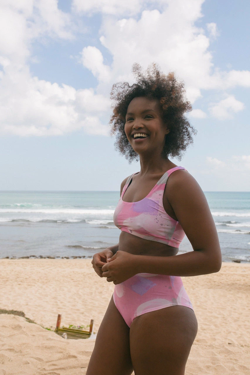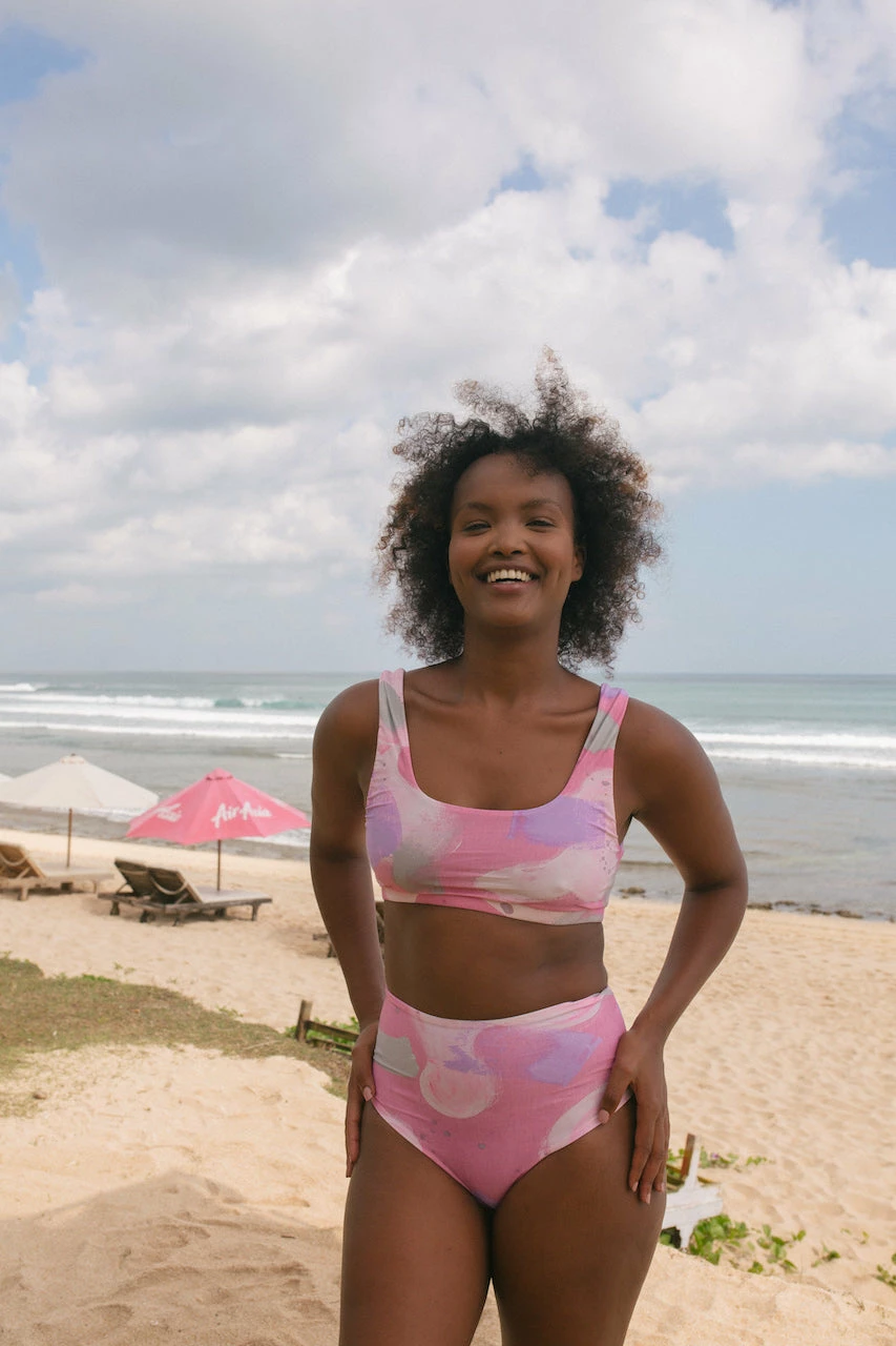 Borne from a collaboration between two women who love to surf and found good quality swimwear impossible to find, especially styles that work for a variety of body shapes and stand up to continuous and serious use.ย Made and tested in Indonesia using a luxury Italian recycled nylon.