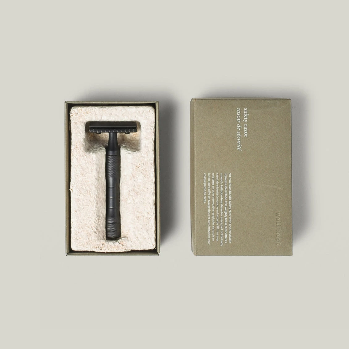 This weighty brass safety razor offers a smooth, irritation-free shave for every part of the body. well kept’s eco friendly razor is made in Canada, lasts for a long (long) time, and works with standard safety razor blades.